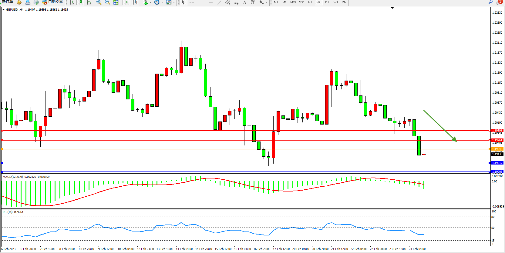 英镑美元GBPUSD ——4小时K线图显示: