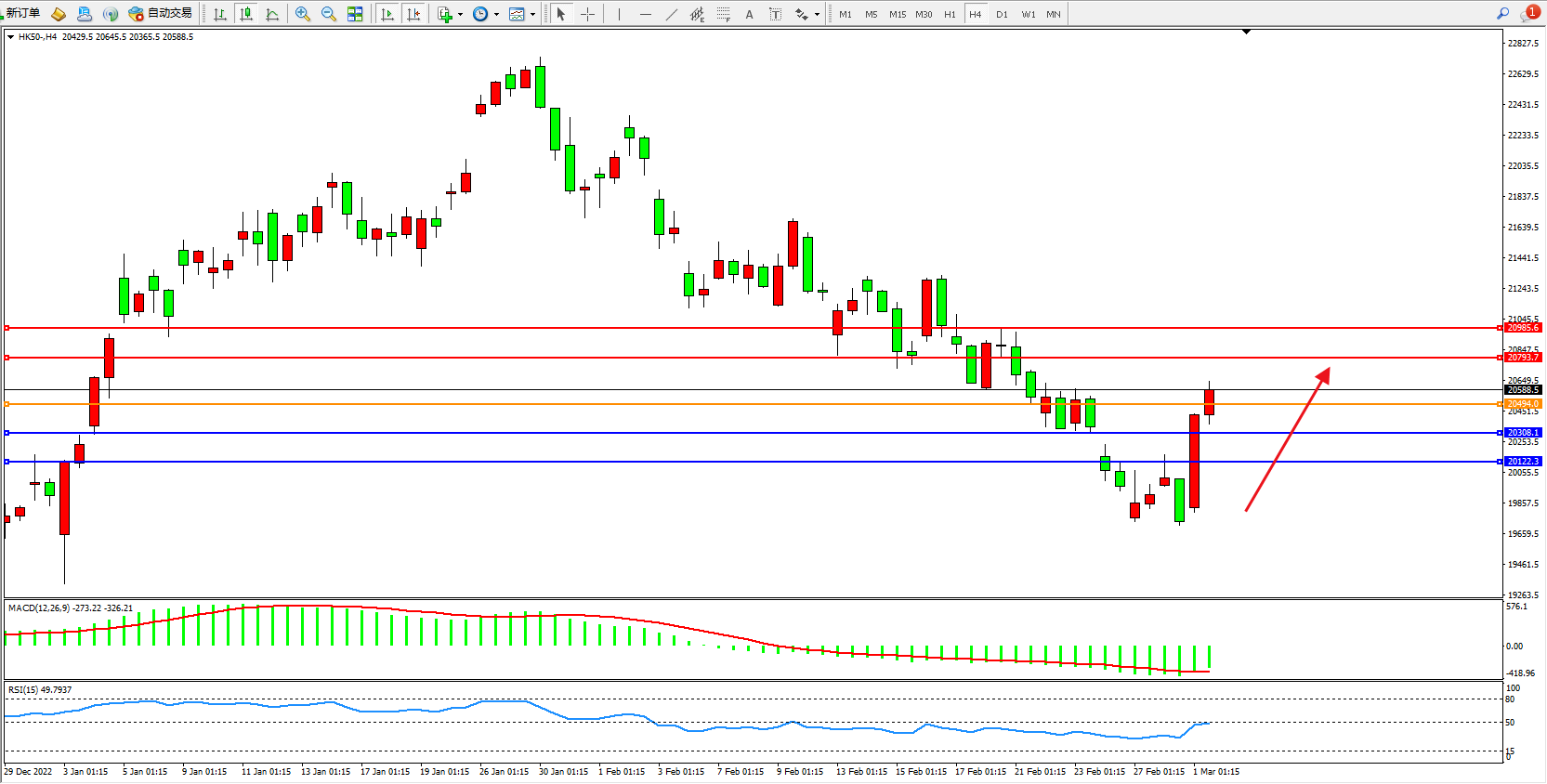 恒指HK50 4小时图