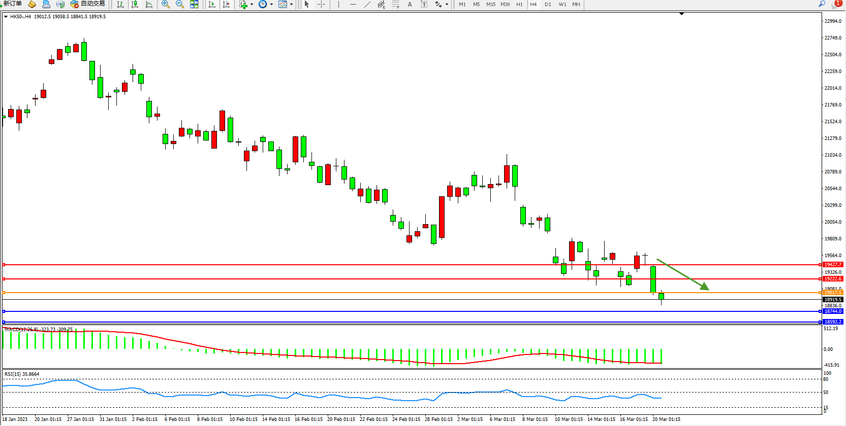 恒指HK50 4小时图