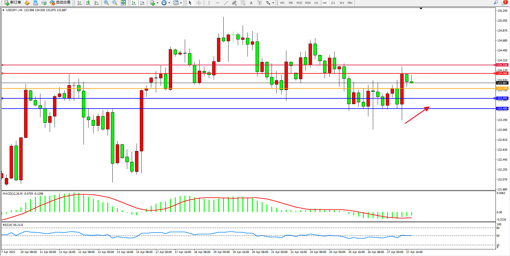 交易策略:133.780上方看涨,目标134.060 134.218