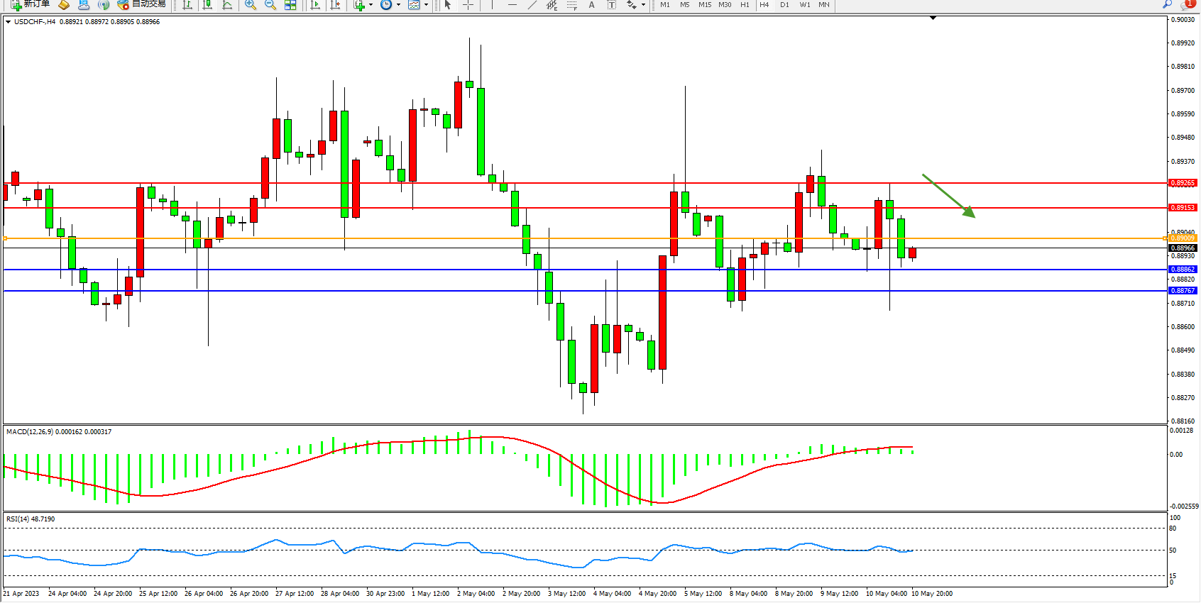 交易策略:0.89009下方看跌,目标0.88862  0.88767