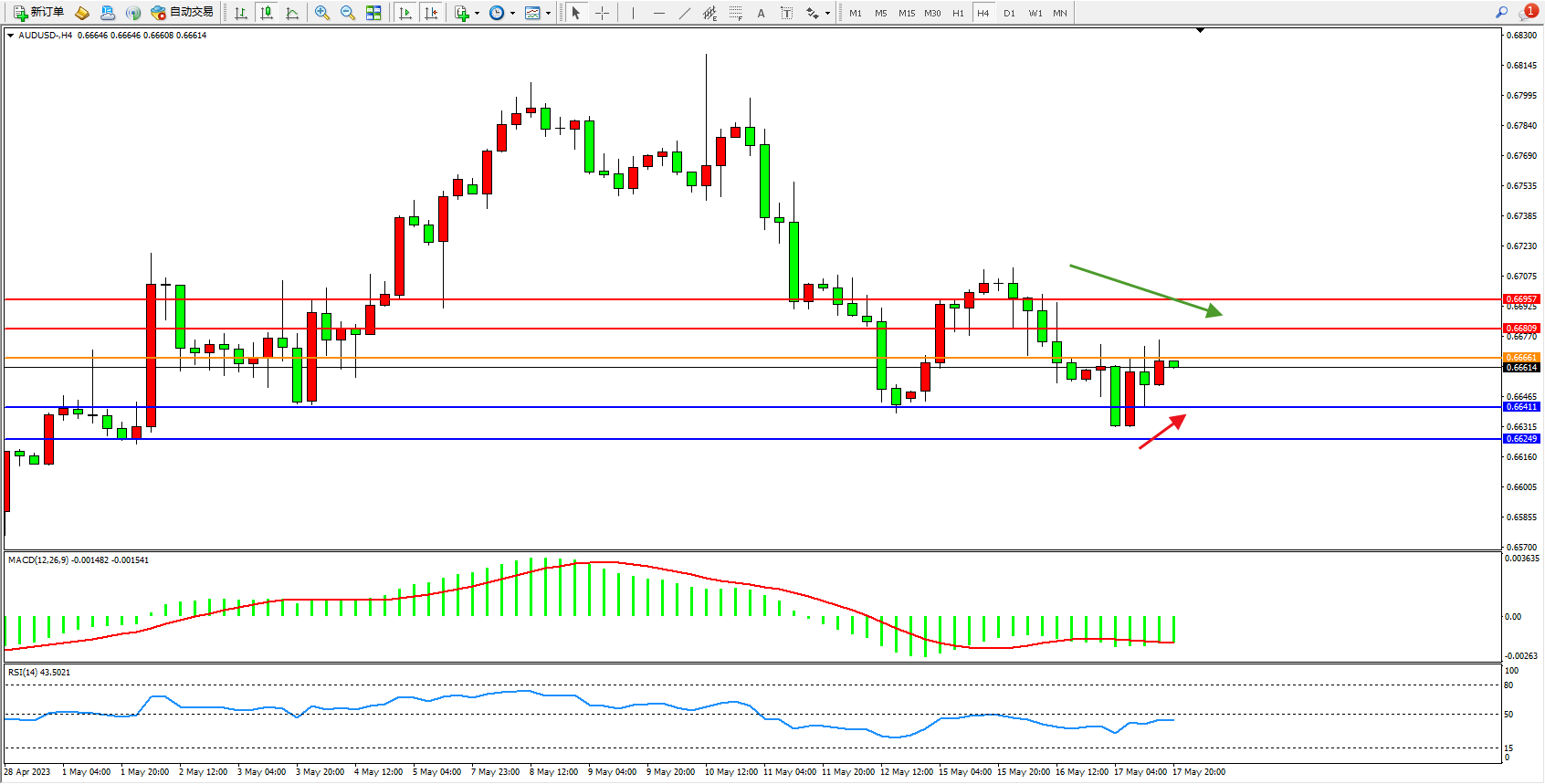 阻力位:0.66809  0.66957
