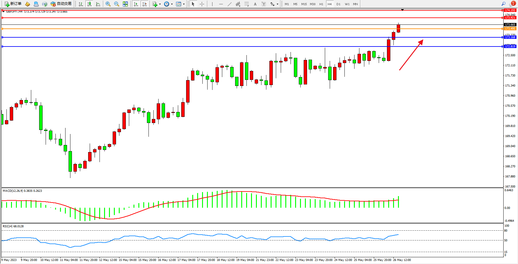 阻力位:173.921  174.193