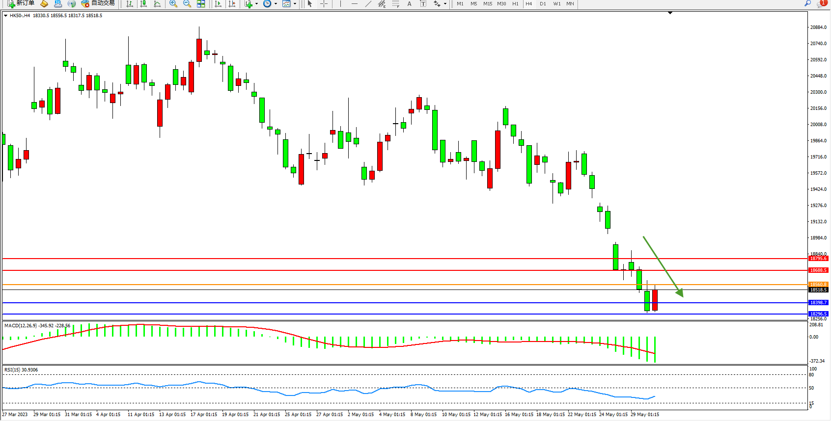 恒指HK50 4小时图