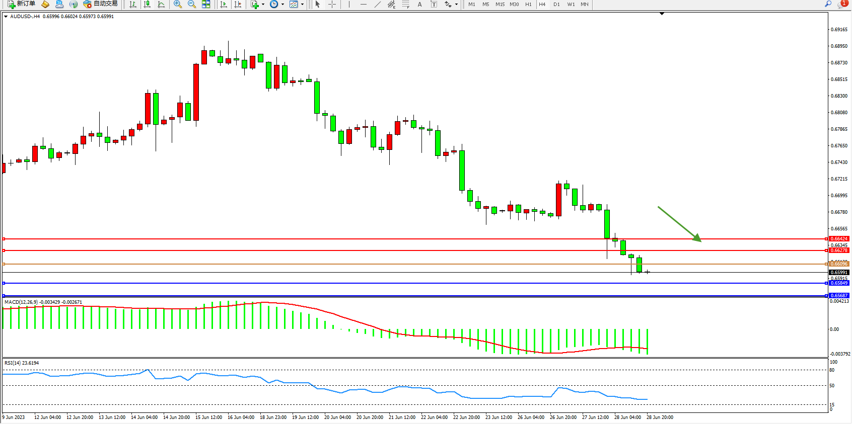 交易策略:0.66096下方看跌,目标0.65849  0.65687