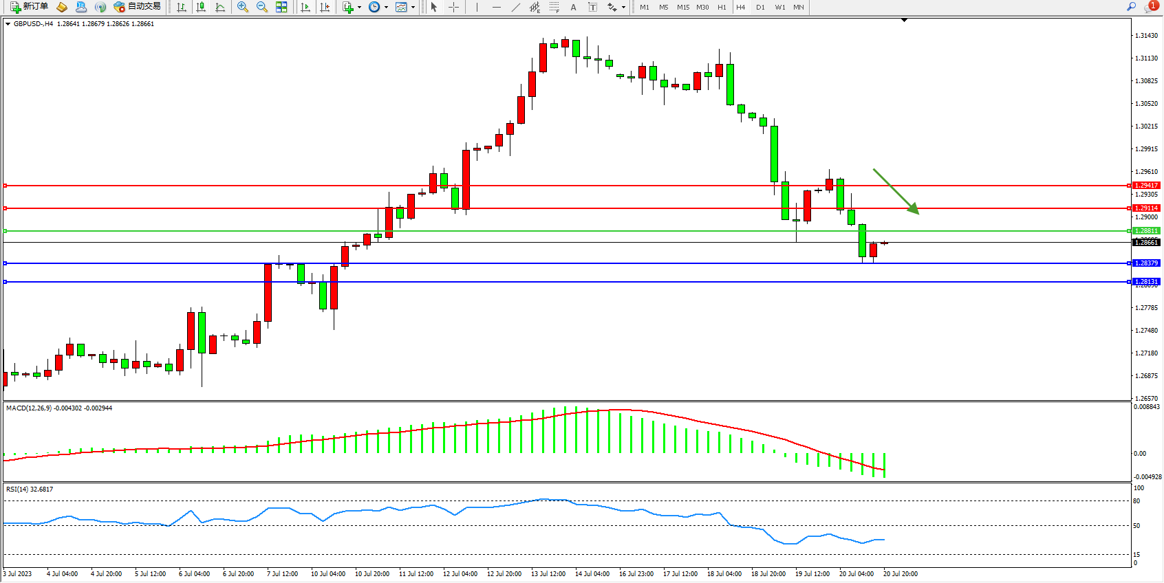交易策略:1.28811下方看跌,目标1.28379 1.28131