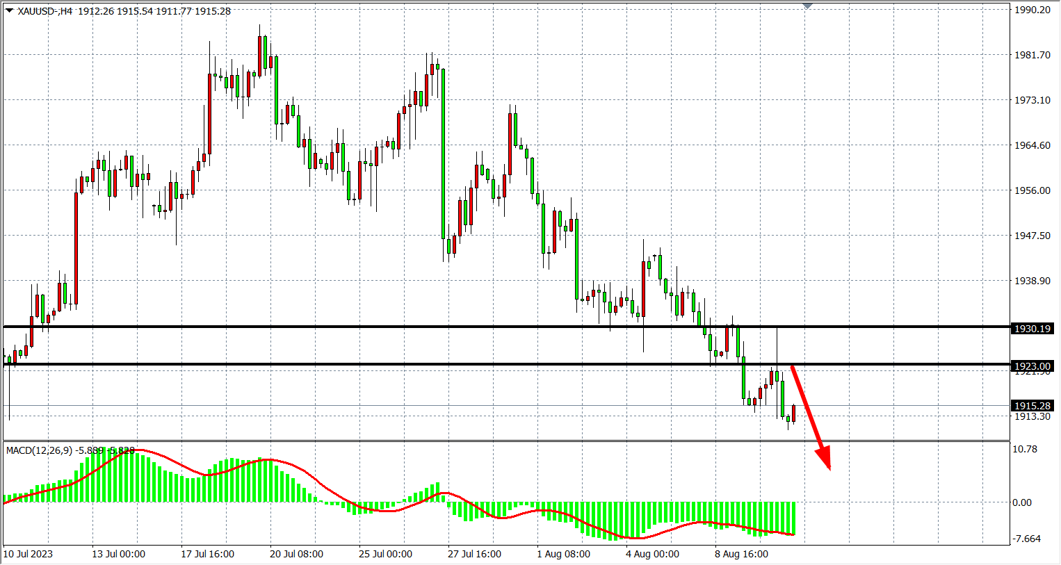 周四(8月10日)美国7月CPI弱于预期,受低于预期的通胀数据提振,现货黄金一度涨至1930.19美元的日内高点,但随后便扭头直下并加速跌破1920美元关口,最终收跌0.09%。强劲的美债收益率和来自中国隐现的担忧有利于美元的复苏,对金价形成压力。