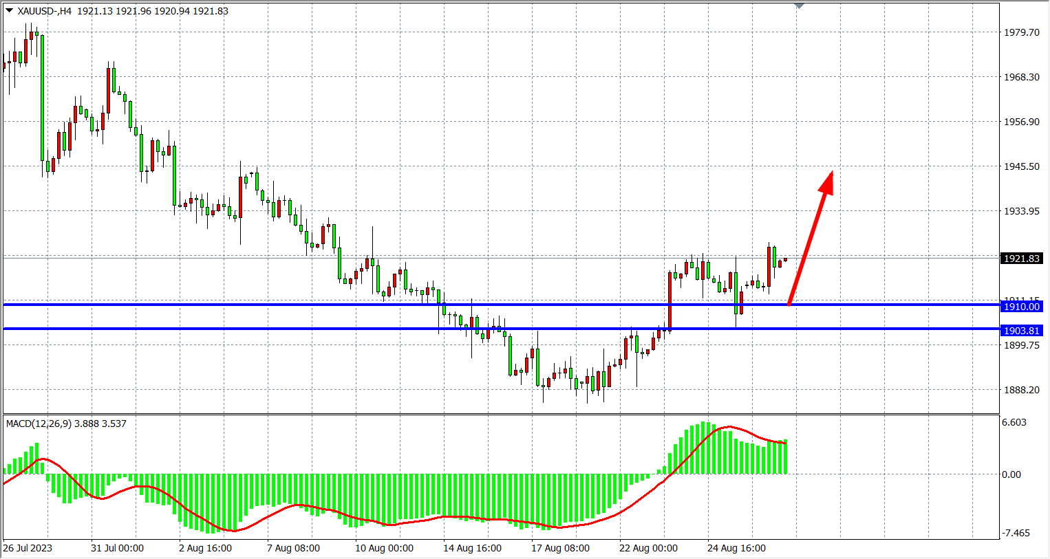 现货黄金XAUUSD 四小时