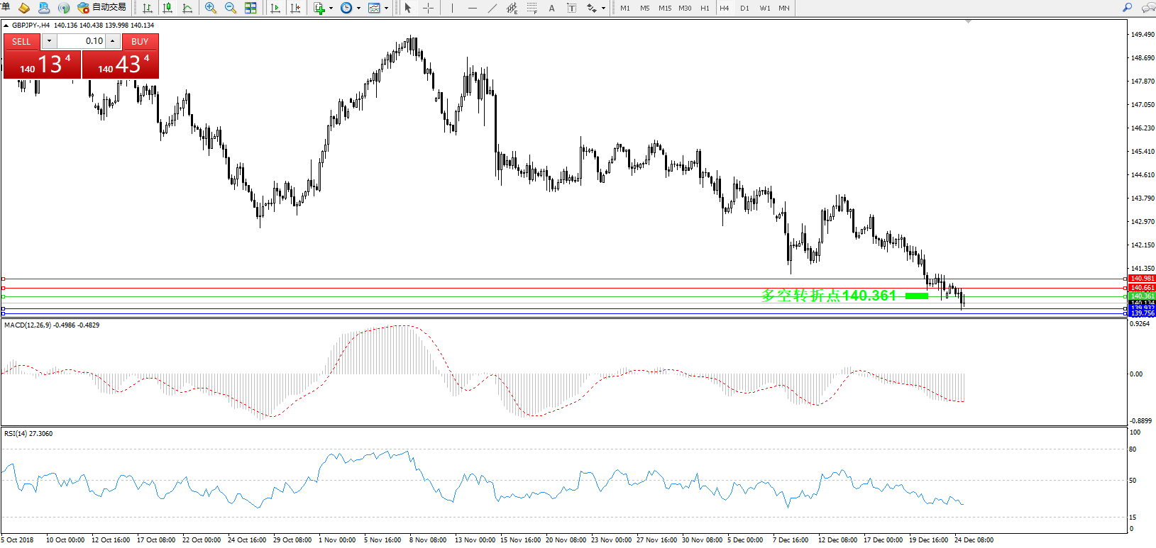 交易策略:140.361下方看跌,目标139.932139.756