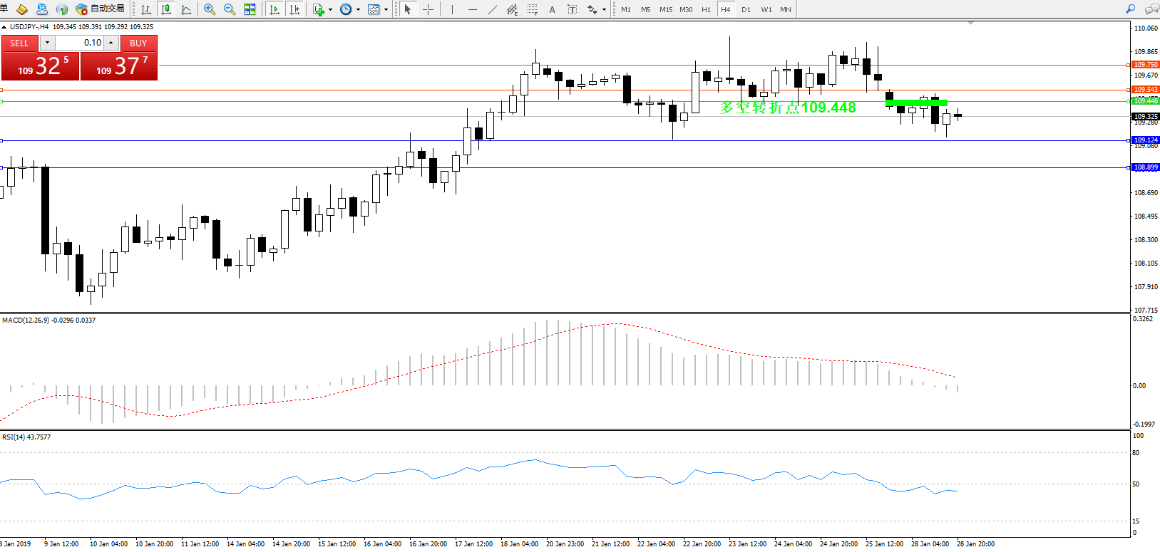 交易策略:109.448下方看跌,目标109.124109.899