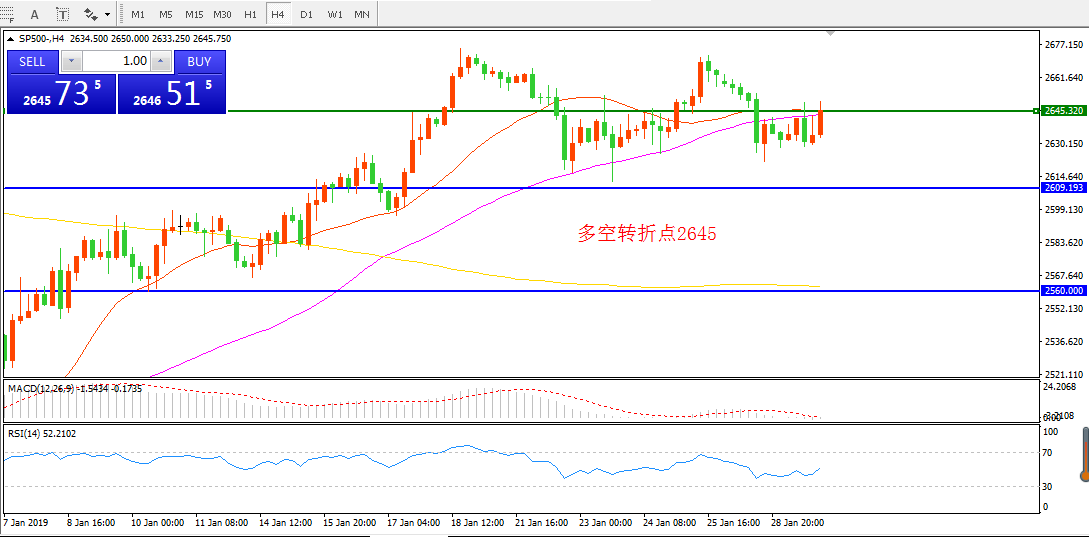 美联储新年首个FOMC议息会议今日召开,市场普遍预期周三将宣布不加息,也希望明天从联储主席鲍威尔的新闻发布会上得到更多缩表的线索。苹果的营业收入和盈利都高于市场预期,但营业收入出现2001年来首次第四季度增长下滑,苹果的一季度营收指引中位值也低于市场预期。标普500指数收跌3.85点,跌幅0.15%,报2640.00点。