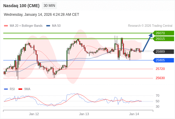 在 25805 之上,看涨,目标价位为 26015 ,然后为 26070 。