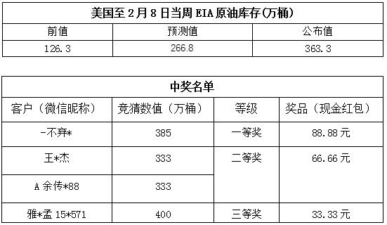 2019年2月第2期“EIA大竞猜活动的中奖结果已出,获奖信息如下: