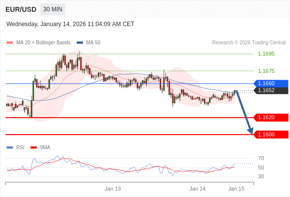 交易策略: 在 1.1660 之下,看跌,目标价位为 1.1620 ,然后为 1.1600 。