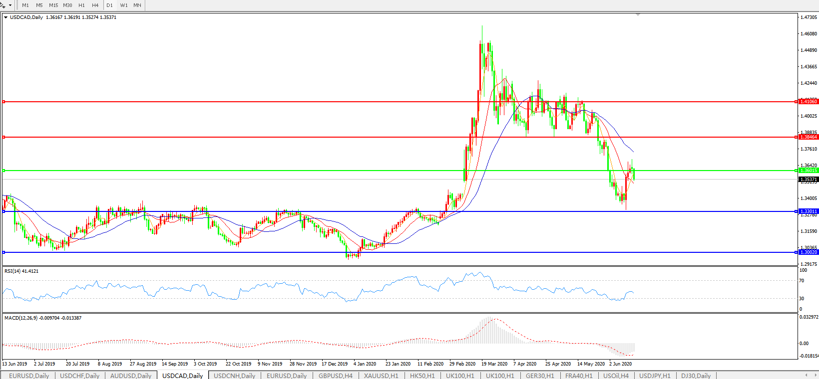 美元兑加元USDCAD    日线图: