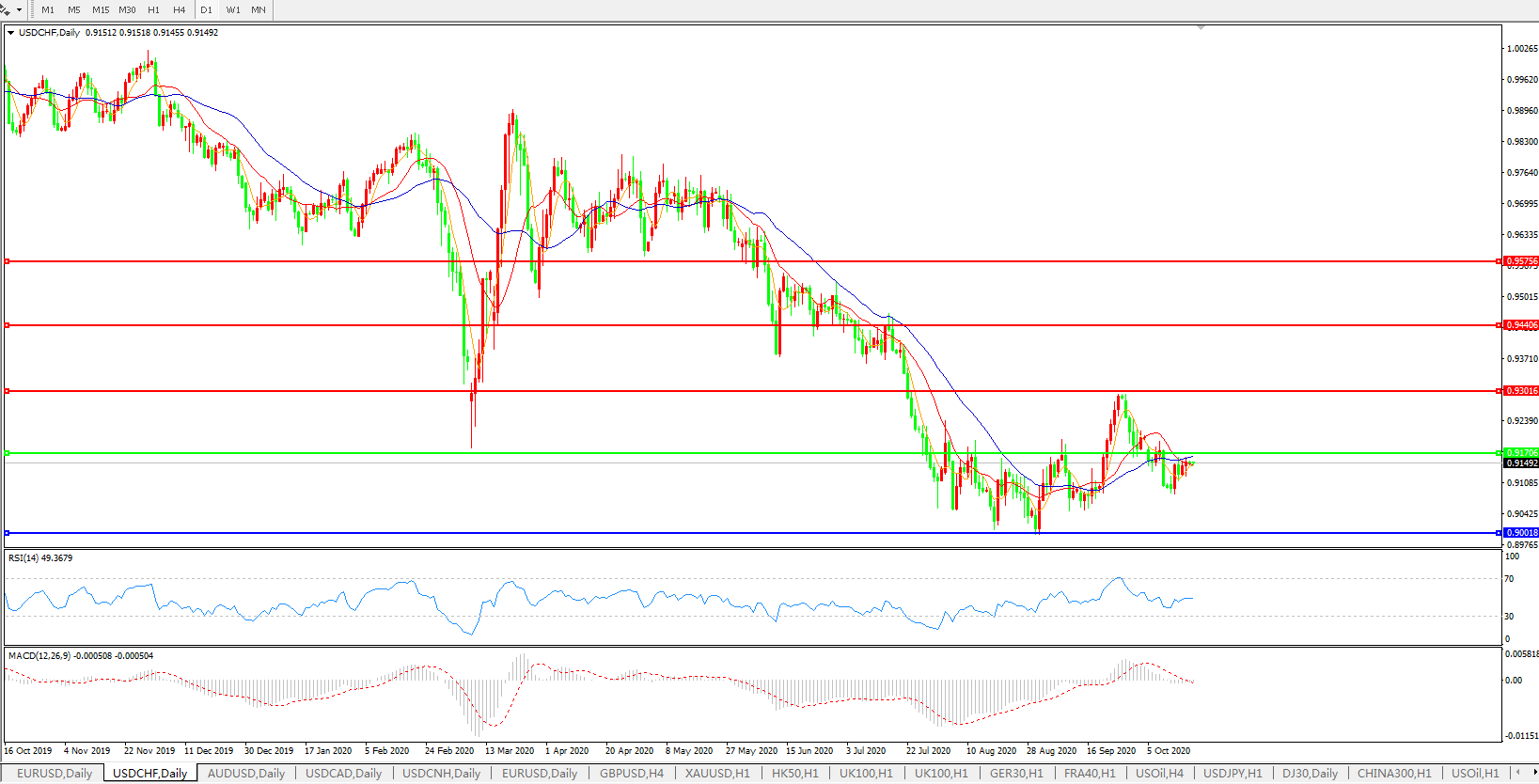 美元兑瑞郎USDCHF 日线图: