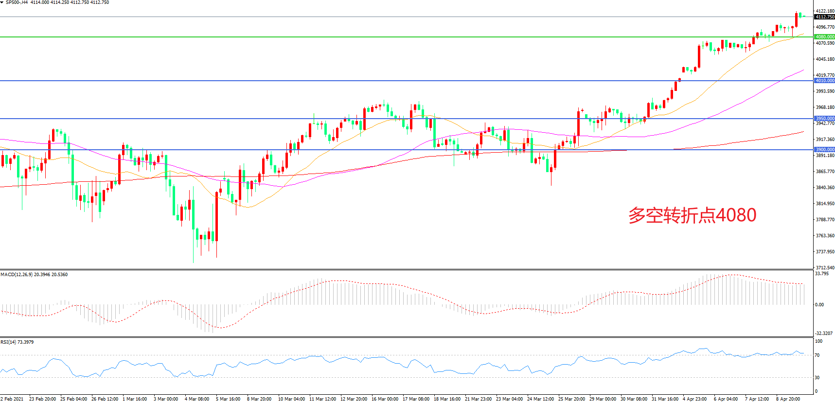 多空转折点:4080.00