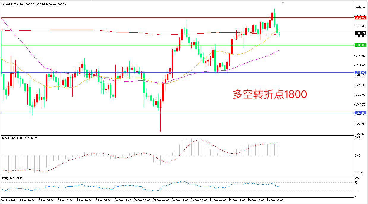 交易策略:在1800.00之上看涨,目标1815.00       1830.00