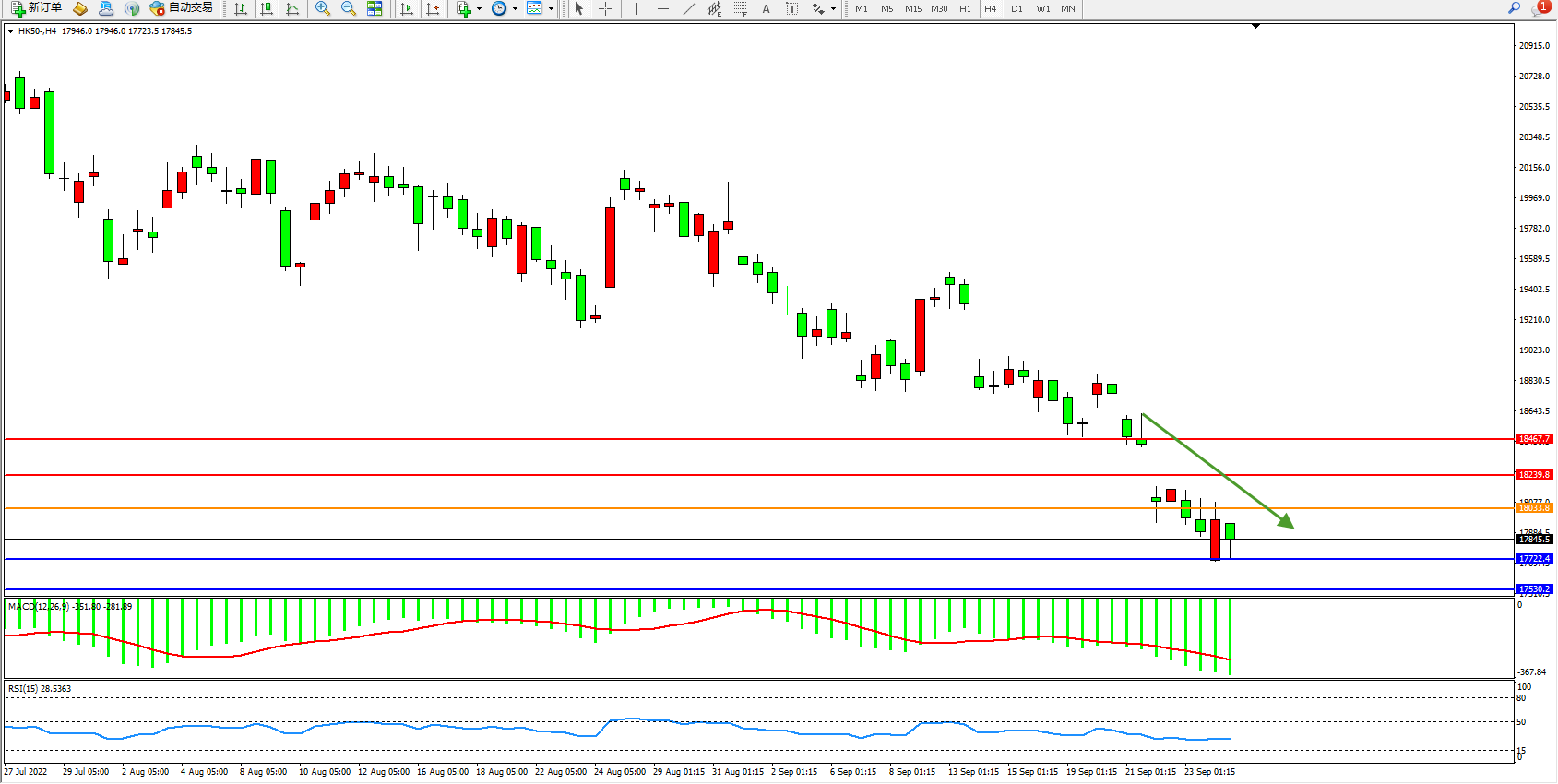 恒指HK50 4小时图