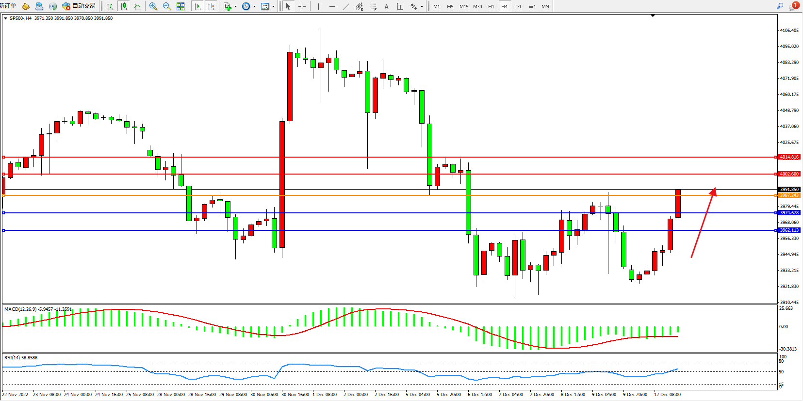 标普SP500——4小时K线图显示: