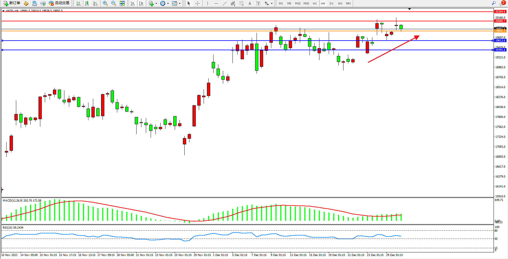 恒指HK50 4小时图
