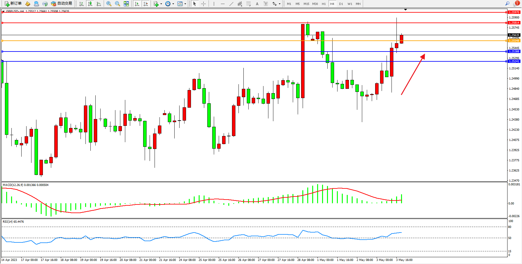 交易策略:1.25548上方看涨,目标1.25814 1.25970