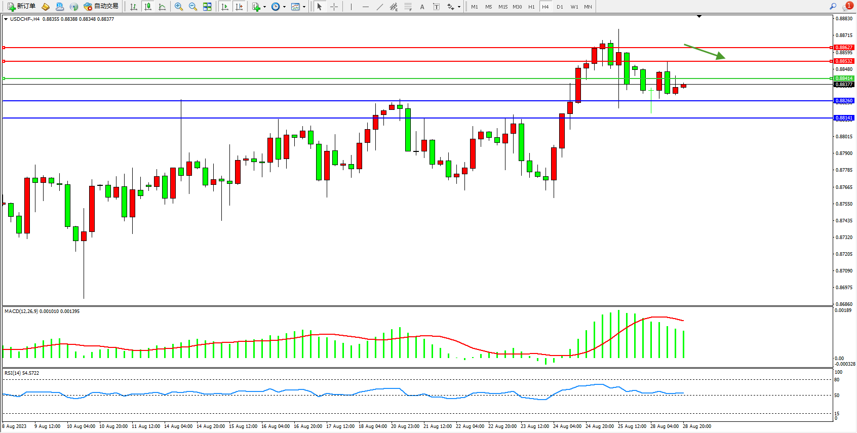 交易策略:0.88377下方看跌,目标0.88260 0.88141